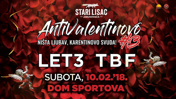 Prvi super-headlineri Antivalentinova 3 su TBF, jedan od najcijenjenijih domaćih bendova koji će se, uz live izvedbe svojih hitova kao što su ‘Veseljko’, ‘Guzice i sise’, ‘Mater’, ‘Fantastična’ i mnoge druge, sasvim sigurno na pozornici i pred publikom Antivalentinova osjećati kao riba u vodi!