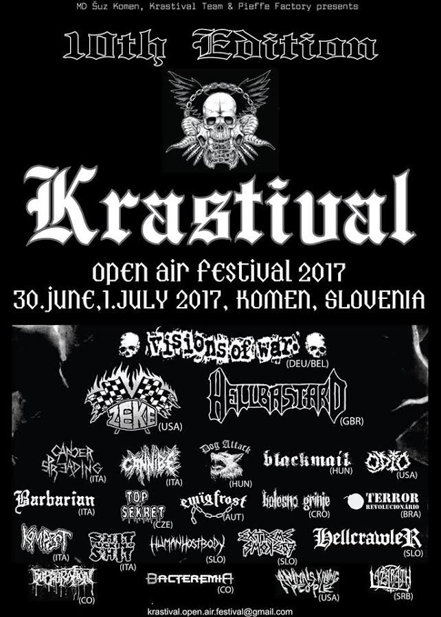 Već je odavno, kad su prvi krici rođenja probudili lokalnu scenu. Godine prolaze, stvari se mijenjaju, pjesme se puštaju, boce se prazne, ekipa postaje starija, ali to nisu razlozi, zbog kojih vam ne bi mogli predstaviti ovogodišnje deseto izdanje Krastivala! Strast za glazbom i D.I.Y. etikom još jednom je okupila ekipu, koji će se pobrinuti, da ćete nakon festivala još par dana poslušati zviždanje u ušima. Na ovogodišnjem desetom Krastivalu ponovo će zagrmjeti punk, crust, hardcore, metal, grind i njihovi derivati! Na poznatoj lokaciji u Komnu na Krasu 30. lipnja i 1. srpnja 2017 možete očekivati sve, što vam ovaj festival uvijek nudi: nastupe domaćih i stranih bendova, besplatno kampiranje, tuševe i WC-je, hranu i piće, nova i stara poznanstva i provod do kada će vas držati vaše noge ili vaši prijatelji. Vidimo se na Krastivalu!