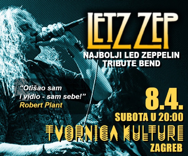 NAJBOLJI SVJETSKI LED ZEPPELIN TRIBUTE SHOW UZ TRIBUTE BAND LETZ ZEP IZ LONDONA ZA KOJE JE I SAM ROBERT PLANT IZJAVIO „OTIŠAO SAM NA KONCERT I TAMO VIDIO SAM SEBE!“, DOLAZI U SUBOTU 08. TRAVNJA U ZAGREBAČKU TVORNICU KULTURE