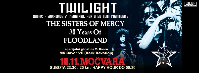 TWILIGHT PARTY POVODOM 30. OBLJETNICE IZLASKA ALBUMA „FLOODLAND“ GRUPE THE SISTERS OF MERCY, NAJBITNIJEG DARK ROCK ALBUMA NA OVIM PROSTORIMA, U SUBOTU 18. STUDENOGA U ZAGREBAČKOJ MOČVARI NAKON KONCERTA ZOLA JESUS