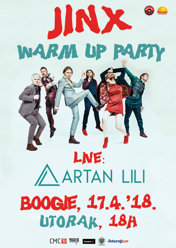Odbrojavamo dane do glazbenog spektakla u Domu sportova kojim Jinxi obilježavaju 20 godina od nastanka prvog velikog hita “Smijem se”. Kako bi se pripremili za ovaj glazbeni događaj, Jinxi su nam organizirali Warm up party. Tako će u utorak 17.travnja, u novom zagrebačkom jazz klubu “Boogie”, Margaretska 1, članovi grupe Jinx se družiti s predstavnicima medija, kolegama glazbenicima i fanovima. Kao glazbene goste ugostit će beogradsku noise pop četvorku “Artan Lili” koja će ujedno nastupiti i na velikom koncertu u Domu sportova 4.svibnja.