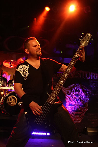 Prvi, od ukupno dva, headliner večeri zasvirao je Brainstorm. Iako su im korijeni u power metalu, svojim dubokoumnim tekstovima o stanju uma, duhovnosti i smrti, te nešto žešćim stilom sviranja i bez previše melodičnih dijelova, odudaraju od standardnog kalupa ovog žanra. Upravo to ih i čini toliko posebnim i odličnim bendom, kojeg čine gitaristi Torsten Ihlenfeld i Milan Loncaric, te bubnjar Dieter Bernert (koji su ujedno i osnovali bend davne 1989.), na bas gitari je Antonio Ieva, a vokal je Andy B. Franck. Nastup su energično počeli s Worlds are Comin’ Through, uvodnom pjesmom s njihovog ‘Liquid Monster’ albuma iz 2005. Nadalje su nastavili sa starim hitovima poput Redemption In Your Eyes, Shiva’s Tears, All Those Words…Promovirali su i nekoliko novih pjesama s aktualnog prošlogodišnjeg albuma ‘On The Spur Of The Moment’ poput In The Blink Of An Eye, Temple Of Stone, Below The Line i In Theese Walls. Karizmatični pjevač Andy B. Franck, iznimnih vokalnih sposobnosti i moćnog clean vokala, konstantno je pokazivao interakciju s odlično zagrijanom publikom, a u nekoliko je navrata gitarist Milan Loncaric, inače hrvatskog podrijetla, komunicirao i zahvaljivao se publici, te na kraju i predstavio bend, a sve na hrvatskom. Nastup su završili odličnom pjesmom, meni osobno najdražom, ujedno i prvom koju sam čula od njih, Highs Without Lows, s njihovog vrlo dobrog albuma ‘Soul Temptation’ iz 2003., s kojim su se i probili, te sagradili temelje za popularnost koju danas uživaju.