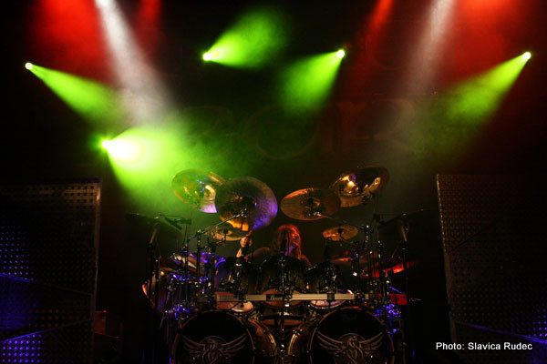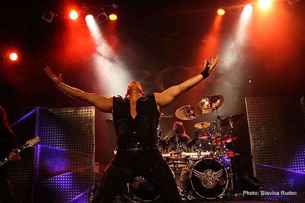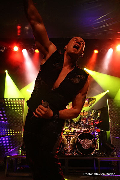 Iako power metal nisam slušala već godinama, glavni headliner večeri Primal Fear me podsjetio zašto sam taj žanr toliko voljela dok sam išla u osnovnu školu. Nastup su otvorili melodičnim uvodnim instrumentalom s aktualnog albuma ‘Unbreakable’. Po nastupu se vidi da je Primal Fear i više no dobro uvježban i profesionalan. Žestoka ritam sekcija bubnjara Randyja Blacka i basiste Matta Sinnera praćena melodičnim i moćnim riffovima Alexandera Beyrodta i 24-godišnjeg grka Constantina (zamjena za Magnusa Karlssona), okrunjena iznimnim visokim vokalom Ralfa Scheepersa kao glavnom snagom benda. Interakcija Scheepersa s publikom konastantno se osjetila, na što je publika uzvraćala vrhunskom atmosferom u tolikoj mjeri, da se na trenutke zaboravljalo da ih je samo 200-tinjak. Prvi dio nastupa uglavnom se sastojao od novijih pjesama poput Strike, Give ’em All, Unbreakable (part II)…Pjesmu Seven Seals, koja me najviše oduševila, prvi sam put u životu čula, i mislim da nije moglo biti boljeg načina nego da ju odmah čujem uživo, gdje se pogotovo osjeti opjevana melankolija i strast, sa harmoničnim instrumentalnim back-upom. Mali odmor za ostatak benda uslijedio je žestokim bubnjarskim solo nastupom Randyja Blacka. Drugi dio nastupa obilježile su pjesme poput Where Angels Die, Metal Nation, Final Embrace…te legendarna himna benda Metal Is Forever, tijekom koje je publika ujedinjeno i iz petnih žila pjevala ‘…metal is forever in every single matter, metal is forever nations come together…’. Za bis su ostavili novu pjesmu Bad Guys Wear Black, a na samom kraju Chainbreaker, tijekom koje im se na pozornici pridružio Milan iz Lenih Kostiju, te su zajedničkim snagama završili ovaj odličan i bez zamjerke odrađen show.