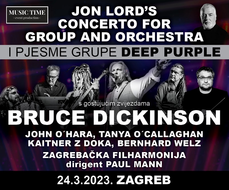 Nakon nedavnog koncerta Maidenovaca u Areni, Zagreb će omiljenog Bruce Dickensona uskoro imati priliku vidjeti u drugom svijetlu – uz pratnju Zagrebačke filharmonije. Naime, projekt “Jon Lord’s Concerto For Group And Orchestra“, repertoar grupe Deep Purple kojeg je skladao osniač i klavijaturist benda Jon Lord prvi puta predstavit će se zagrebačkoj publici 24. ožujka 2023. u KC Dražen Petrović.