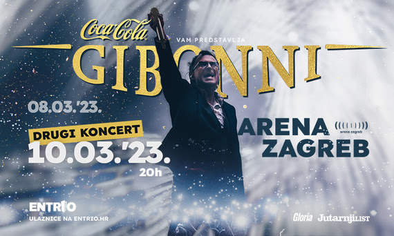 Dodatne ulaznice za Gibonnijeve koncerte u Areni Zagreb 8. i 10. ožujka možete nabaviti u sustavu Entrio od 3. veljače u 12 sati.