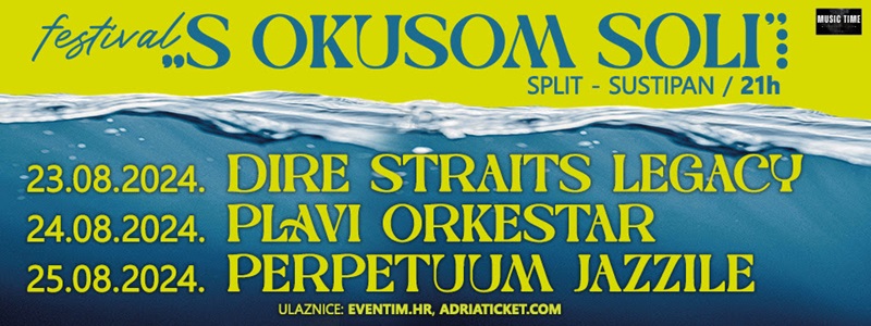 Četvrti, sada već tradicionalni festival „S OKUSOM SOLI…“ održat će se od 23. do 25. kolovoza, a ove godine na splitski Sustipan dovodi tri popularna benda. Prvog dana festivala, 23. kolovoza na programu je koncert legendarnog Dire Straits Legacy. Drugog dana, 24. kolovoza održat će se veliki povratnički koncert Plavog orkestra, a trećeg dana, 25. kolovoza održat će se glazbeni spektakl, nastup svjetske glazbene atrakcije, zbora Perpetuum Jazzile.