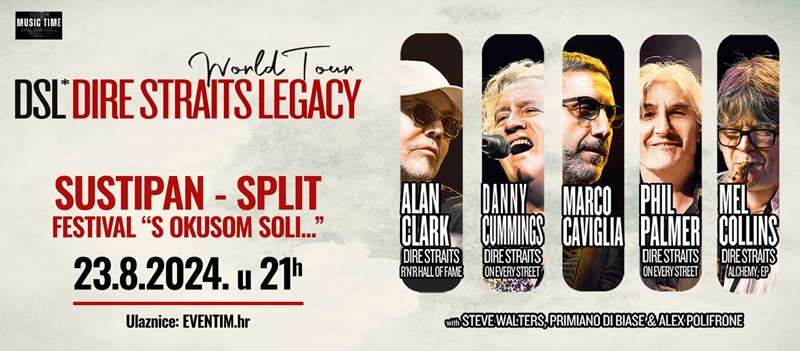 Dire Straits Legacy nastupaju na Sustipanu u okviru svoje svjetske turneje. Ovo je inače nastavak glazbene grupe Dire Straits koja uključuje četiri originalna člana kultne postave koji su doprinijeli prepoznatljivom zvuku i glazbenom izričaju, te godinama snimali albume i išli na turneju kao Dire Straits –  Alan Clark, prvi klavijaturist Dire straits, dobitnik nagrade Grammy i član Rock’n’Roll Hall of Fame 2018, Phil Palmer i Danny Cummings koji su se pridružili bendu na fantastičnom albumu On Every Street, te Mel Collins koji je svirao saksofon od albuma “Love Over Gold” i svjetske turneje iz 1982. godine. Ostali članovi Dire Straits Legacy uključuju Grammyjem nagrađenog bubnjara Cristiana Micalizzija i frontmena Marca Cavigliu koji se smatra vodećim svjetskim primjerom jedinstvenog stila sviranja gitare Marka Knopflera.  Dire Straits Legacy prodali su preko 120 milijuna albuma diljem svijetNa Sustipanu će se moći čuti svjetski hitove uključujući Money for Nothing, Sultans of Swing, Romeo and Juliet, Walk of Life, Brothers in Arms, Tunnel of love i mnoge druge.