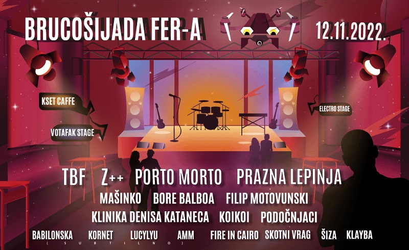 Brucošijada FER-a će se održati u subotu, 12.11., a uz već objavljene izvođače, na hodnicima FER-a nastupat će i Bore Balboa, Subtilno, Šiza te Klayba. Za one koji bi radije plesali u zamračenom klubu bit će organiziran KSET Caffe gdje će se puštati nezaboravni strani i domaći hitovi.