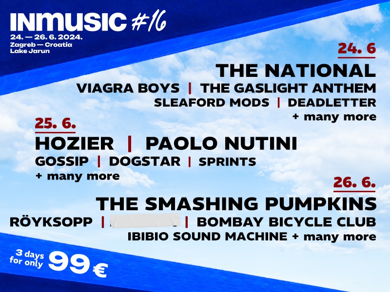 INmusic festival je najdugovječniji hrvatski višednevni open-air festival koji predano promovira festivalsku kulturu u Hrvatskoj od svog prvog izdanja 2006. godine i posjetiteljima pruža jedinstveno i cjelovito glazbeno iskustvo kroz festivalski program raspoređen u tri dana, a trodnevne festivalske ulaznice dostupne su po cijeni od 99 EUR (+ troškovi transakcije) putem službenog INmusic webshopa te u Dirty Old Shopu (Tratinska 34, Zagreb) po cijeni od 99 EUR. Putem službenog festivalskog webshopa dostupne su i sedmodnevne kamperske ulaznice po cijeni od 49 EUR koje su važeće isključivo u paru s trodnevnom ulaznicom za INmusic festival #16.