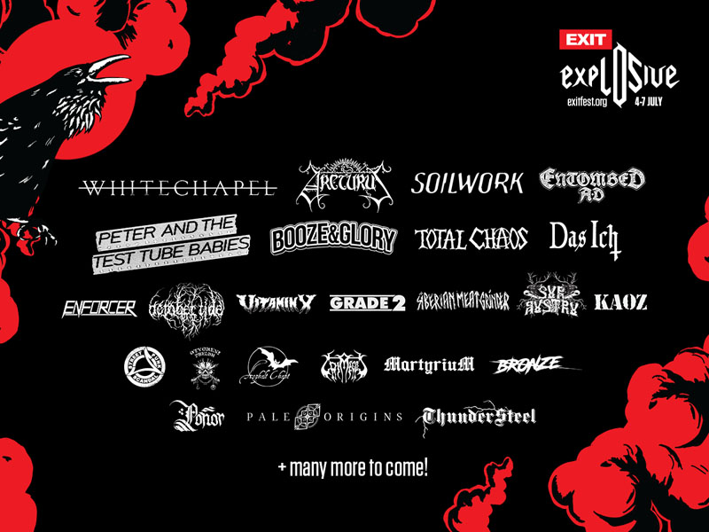 Ekstremna pozornica za ekstremne ljude, čuveni Explosive Stage smješten u rovovima Tvrđave, ove godine bit će pravo poprište fanova žešćeg zvuka EXIT festivala. Uz već najavljene Phila Anselma koji će na glavnoj pozornici uz svoj novi bend The Illegals izvesti set koji se sastoji od pjesama Pantere, kao i operne metal dive Tarje Turunen koja stiže na Addiko Fusion pozornicu, na EXIT i Explosive stižu Arcturus, Entombed A.D, Peter and the Test Tube Babies i Total Chaos, ali i niz drugih domaćih, regionalnih i svjetskih izvođača spremnih za opasnu svirku. Nova pojačanja predvodi jedno od vodećih svjetskih deathcore imena, Whitechapel, koji premijerno stižu na ove prostore i čiji živi nastupi predstavljaju pravu energetsku bombu koja se ne propušta, dok se giganti švedske melodic death scene, Soilwork, također pripremaju za svoj premijerni nastup u Srbiji, kako bi publiku poveli na zvučno putovanje kroz svoju bogatu karijeru, ali i podijelili s njom pjesme s najnovijeg studijskog albuma Verkligheten! Evoluciju svog zvuka i desetogodišnjicu karijere na Explosive pozornici proslavit će Booze & Glory, neustrašiv street punk/Oi! sastav iz Londona s herojskom posvećenošću nastupima uživo, a jedan od svojih karakteristično lucidnih nastupa priredit će njemačke i svjetske legende dark wave industrial scene, Das Ich, koji su od osnivanja krajem osamdesetih do danas inspirirali bezbroj umjetnika širom svijeta.