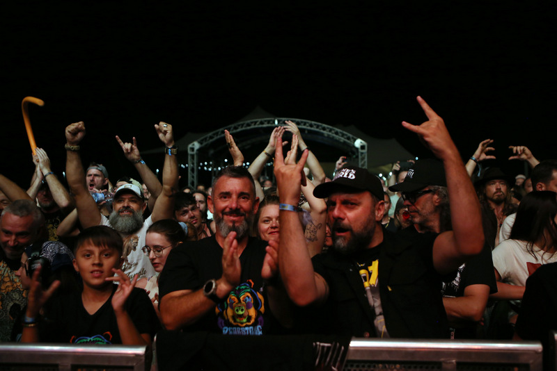 Petak je donio novo poglavlje – uz glazbu, i nebo se odlučilo oglasiti. Neposredno prije našeg dolaska, festival je pogodio ozbiljan pljusak koji je natopio kamp i odgodio početak programa na glavnoj pozornici. Ovo mi je treća godina na festivalu, i znam, nismo mogli dovijeka izbjegavati kišu. No, kako to obično biva na festivalima – ništa nije moglo pokvariti raspoloženje. Blato je zamijenjeno smijehom, šatori su se brže osušili uz pokoje pivo, a kad je glazba konačno krenula, krenula je sa stilom. Program je na glavnom stageu nešto malo kasnio , a došlo je i do određenih promjena u rasporedu zbog kiše i kašnjenja letova. Mi smo stigli taman na završnicu benda Maidavale. Još jedan all-female bend (uz The Darts koje su prethodnu večer nastupile na Jam Stageu) koji je zagrijao glazbene neurone publike svojim živahnim spojem neo‑psihodelije, krautrocka, post-punka, funkadelije i sjevernoafričkog bluesa. A kada se Brant Bjork, osnivač Kyussa i Fu Manchua, pojavio na pozornici sa svojim najnovijim projektom – Brant Bjork Trio, znala sam da će nas teleportirati u pustinjske krajolike Joshua Tree. U pratnji basiste Maria Lallija i bubnjara Mikea Amstera, trio je isporučio cakum-pakum stoner rock s funk i psihodeličnim infusionima, baš onako kako legenda pustinjske scene zna. Zvuk benda bio je topao i opušten, hipnotičan, ali i čvrst – bubanj taman koliko treba, bas uvaljan u fuzz, a Brantova gitara vozi u tom svom prepoznatljivom laid-back ritmu koji ti se polako zavlači pod kožu. Publika je upijala svaku sekundu, s blagim klimanjem glave i osmijehom na licima. Nije to bio nastup koji te razvali snagom – bio je to glazbeni chill out session za one koji razumiju. Nakon njih, binu su zauzeli šveđani Graveyard. Mene se osobno nisu dojmili, a imam osjećaj da je i dio publike dijelio moje mišljenje. Iako su Graveyard na papiru veliki headlineri i bend s ozbiljnom reputacijom dugom gotovo dva desetljeća, njihov nastup na Bearstoneu ostavio je pomalo podijeljen dojam. S tehničke strane sve je štimalo – rifovi, produkcija, Nilssonov prepoznatljiv vokal – ali energija na terenu je bila… klimava. Setlista je varirala između usporenih balada i življih numera, pa je publika čas cupkala pokušavajući napraviti moshpit, čas gledala u nebo, pitajući se je li možda vrijeme za otići po još jedno pivo. No, jednu stvar im ne mogu osporiti – definitivno su virtuozi. Ali mislim da su ipak trebali ostati bend za kraj večeri, no eto, spletom okolnosti i zbog kašnjenja leta, Monolord je morao odgoditi svoj nastup i prepustiti mjesto Graveyardu, tako da je Monolord u petak nastupio kao zadnji bend večeri na glavnoj pozornici. Publika ih je definitivno dočekala s nestrpljenjem. Od prvih tonova pjesama s posljednjeg albuma ‘Your Time to Shine’, osjetilo se da ovi švedski majstori dooma sa sobom donose teške riffove, masivne basove i onu specifičnu skandinavsku tjeskobu. Njihov set bio je poput usporenog potopa – svaka nota vibrirala je kroz zemlju, a publika se kolektivno prepustila transu. Bas Mika Häkia bio je toliko dubok da se činilo kao da vibrira cijelim festivalom (a što drugo i očekivati kad vidite da mu je bas spušten praktički do koljena), a bubnjar Esben Willems lupao je s takvom snagom da su se ritmovi osjećali kroz svaki atom zraka. Od ‘Empress Rising’ i ‘Rust’ do mračnijih pasaža s novijih albuma, Monolord je isporučio set koji nije bio samo glasan – bio je ogroman, sveobuhvatan i potpuno obuzimajući. Publika je konačno dočekala svoje zakucavanje.