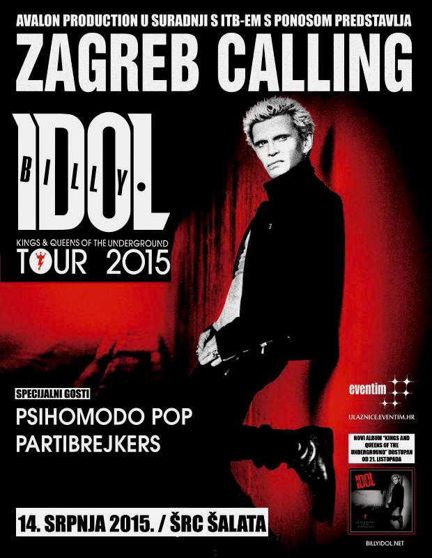 Na prvi “Zagreb Calling” Billy Idol stiže u sklopu velike europske turneje koja prati aktualan album “Kings And Queens Of The Underground”, objavljen u listopadu prošle godine. Billyjevo sedmo studijsko izdanje producirao je “čovjek koji je izmislio 80te”, legendarni producent i član grupa Yes, Art Of Noise i The Buggles, Britanac Trevor Horn. Njemu se u dvije pjesme pridružio Greg Kurstin koji iza sebe ima suradnje s artistima poput Lily Allen, Tegan and Sare, Sie i mnogih drugih.