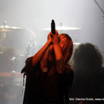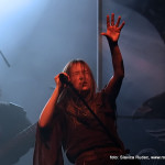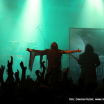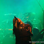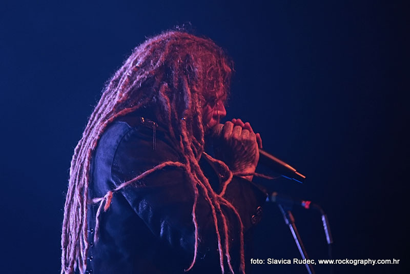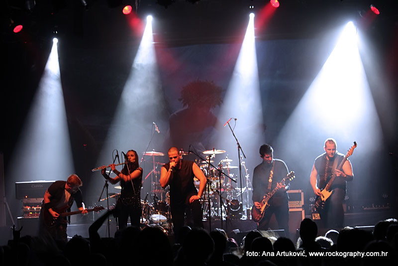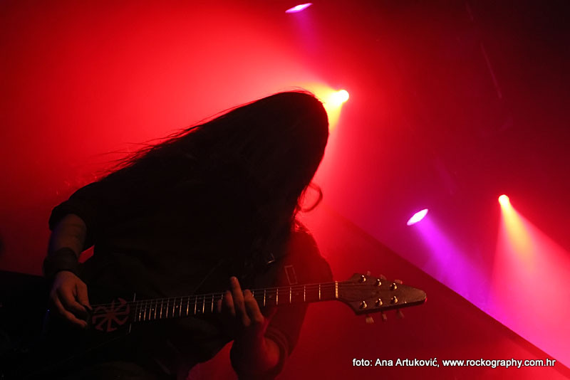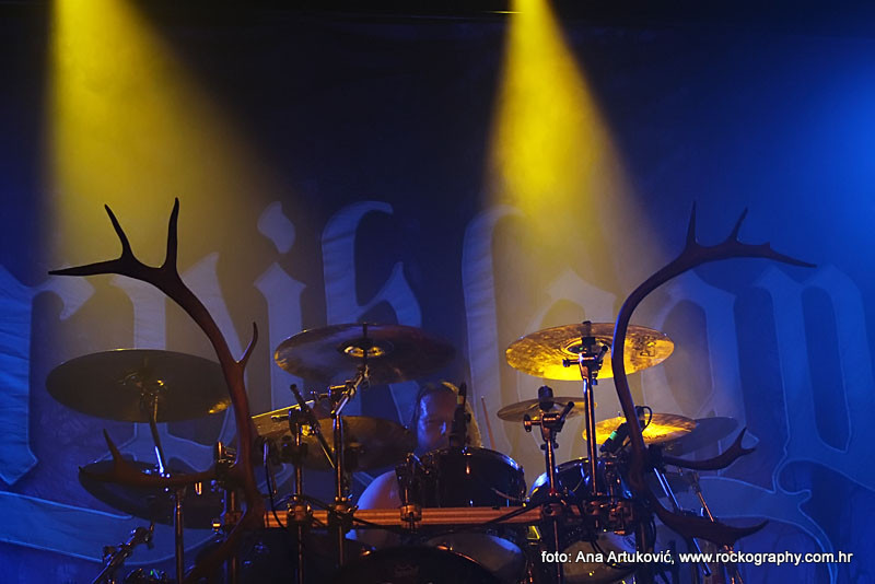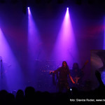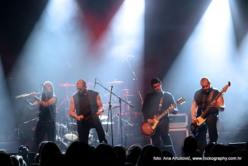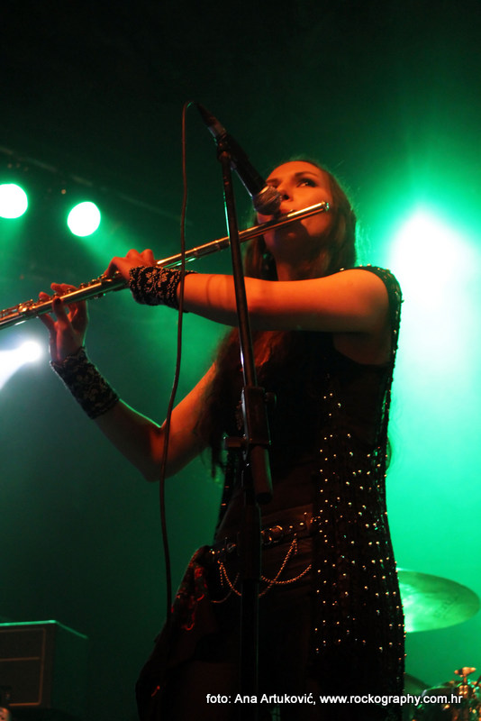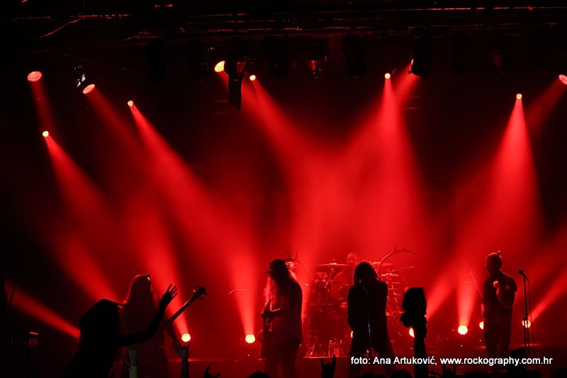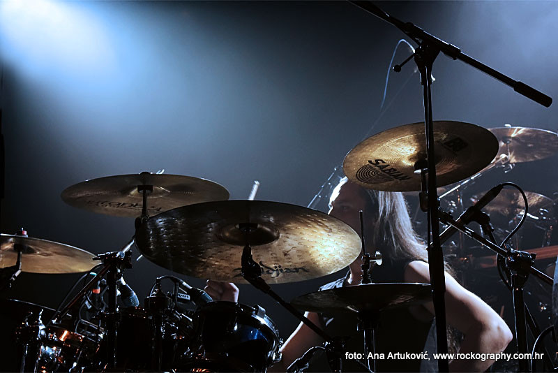 U 20:30 Tvornicom je počeo odjekivati uvodni intro za vrijeme kojeg su se članovi benda, a naposlijetku i sama Masha (s razlogom zvana) ‘Scream’. popeli na stage i otvorili s ‘Yav’, naslovnom pjesmom s njihovog istoimenog posljednjeg albuma. Čudo kako tako naizgled nježna i krhka žena može iz sebe pustiti takve zvukove. S jedne strane prelijepi clean vokali s etno prizvucima, i onda najednom growlanje iz dubine utrobe. Ovo mi je treći put da ih gledam, tj. slušam. Prvi put sam ih vidjela u Sisku, zatim na Metalcampu, gdje su nastupom usred bijela dana po onakvoj vrućini izazvali takav lom među publikom (čak su i zaštitari dopustili crowd surfing skroz do foto pita) kakav nisam vidjela od nijednog benda koji je nastupao preko dana u svom trogodišnjem pohodu na Metalcamp. Iako je publika za vrijeme njihovog nastupa gotovo neprestano skakala i imala ruke u zraku, a moglo se vidjeti i poneko ‘odvrtanje žarulja’, hehe, nije mi to bilo to od strane publike. S druge strane, ni nastup Arkone nije bio među njihovim najboljima. Možda je razlog tome i to što je Mašinom sinu uskoro rođendan, a ona opet neće moći biti s njim radi turneje. U svakom slučaju, Mashino neprestano skakanje i dinamičnost na pozornici je za svaku pohvalu, ali nije se obraćala previše publici, a i ono što je progovorila bilo je na ruskom, osim što je 2-3 puta rekla Hvala, Zagreb!…uz to, vidjelo se da su nastup odradili pomalo nezainteresirano. Joj da, i zvuk, odnosno zvuk vokala, je bio na momente loš. Uglavnom, njihova set lista od deset pjesama obuhvatila je i stare i nove stvari, od kojih su najzapaženije prošle ipak one već dobro poznate poput ‘Goi, Rode, Goi’, ‘Ot Serdtsa k Nebu’, ‘Liki Bessmertnykh Bogov’, ‘Pamyat’, ‘Stenka na Stenku’ i na kraju ‘Yarilo’. Unatoč neumornom zvanju i skandiranju publike, bisa nije bilo.