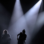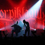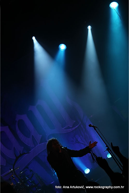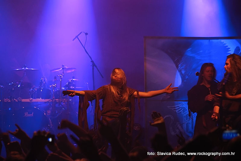 Najveći razlog ovako velikoj posjećenosti, jedan od omiljenih bendova hrvatske publike – što i ne čudi s obzirom koliko su već puta (ako dobro brojim ovo im je peti put) ovdje svirali – finski ‘šumski klan’ Korpiklaani, koji su već dobro uvježbanim i istreniranim korakom zauzeli stage točno u 22 sata. Nastup su odmah otvorili veselo s novom ‘Viinamäen mies’ s njihovog aktualnog albuma ‘Noita’, i starom, dobro poznatom ‘Journey Man’ na kojima se publika odmah digla na noge. Ovo je bend koji je poznat po svojoj energičnosti i spontanosti na stageu, što ne možemo reći da je ovdje bio slučaj. Što je pogodovalo tome, možemo samo nagađati i nadati se da je to bilo jednokratno. Naime, koncert je na momente bio poprilično dosadan, u jednom trenutku sam mislila da ću zaspati kako su dosadne pjesme svirali, a isto mišljenje sa mnom su dijelili i većina u publici i tribine na kojima su ljudi uglavnom sjedili. Najzanimljiviji vizualni dio koncerta bila je stalna interakcija harmonikaša i gitariste koji su non stop animirali publiku i dokazali da sve oči ne moraju uvijek biti uperene u pjevača. Tek nešto pred kraj koncerta, valjda kad su i sam Jonne Järvelä i ostali skužili da gube publiku, počeli su opet s veselicama, pa je publika u trenu živnula čim je čula prve taktove i riffove jedne od njihovih najpoznatijih pjesama ‘Vodka’, nakon koje su uslijedile također dobro prihvaćene veselice ‘Rauta’ i ‘Wooden Pints’. I za vrijeme njihovog nastupa mogle su se uočiti neke tehničke smetnje: dvaput se nakratko (sekunda, dvije) čulo ono što ti probije uši (ne znam stručnu terminologiju) kad se mikrofon sje*e i počne pištati. Da ih publika nije dobro prihvatila, vidjelo se i iz činjenice da su ljudi počeli izlaziti prije nego što su se Korpiklaaniji vratili na bis, na kojem su odsvirali još nekoliko pjesama i ovu večer priveli kraju uz ‘Happy Little Boozer’ i ‘Juodaan Viinaa (Hector Cover)’ .